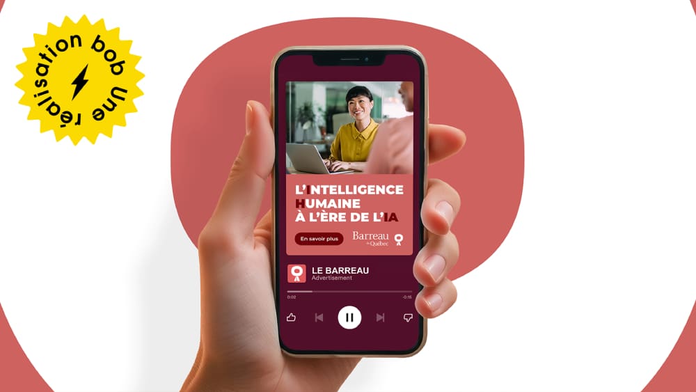 Artificial Intelligence (AI) is transforming numerous sectors, including the legal field. While these technologies improve access to information and automate repetitive tasks, the nuanced interpretation of laws and consideration of human contexts remain exclusively within the expertise of legal professionals. To emphasize this essential message, the Barreau du Québec, in collaboration with Espace M’s media expertise and Bob‘s creativity, has launched a campaign highlighting that human intelligence remains indispensable in the legal domain.