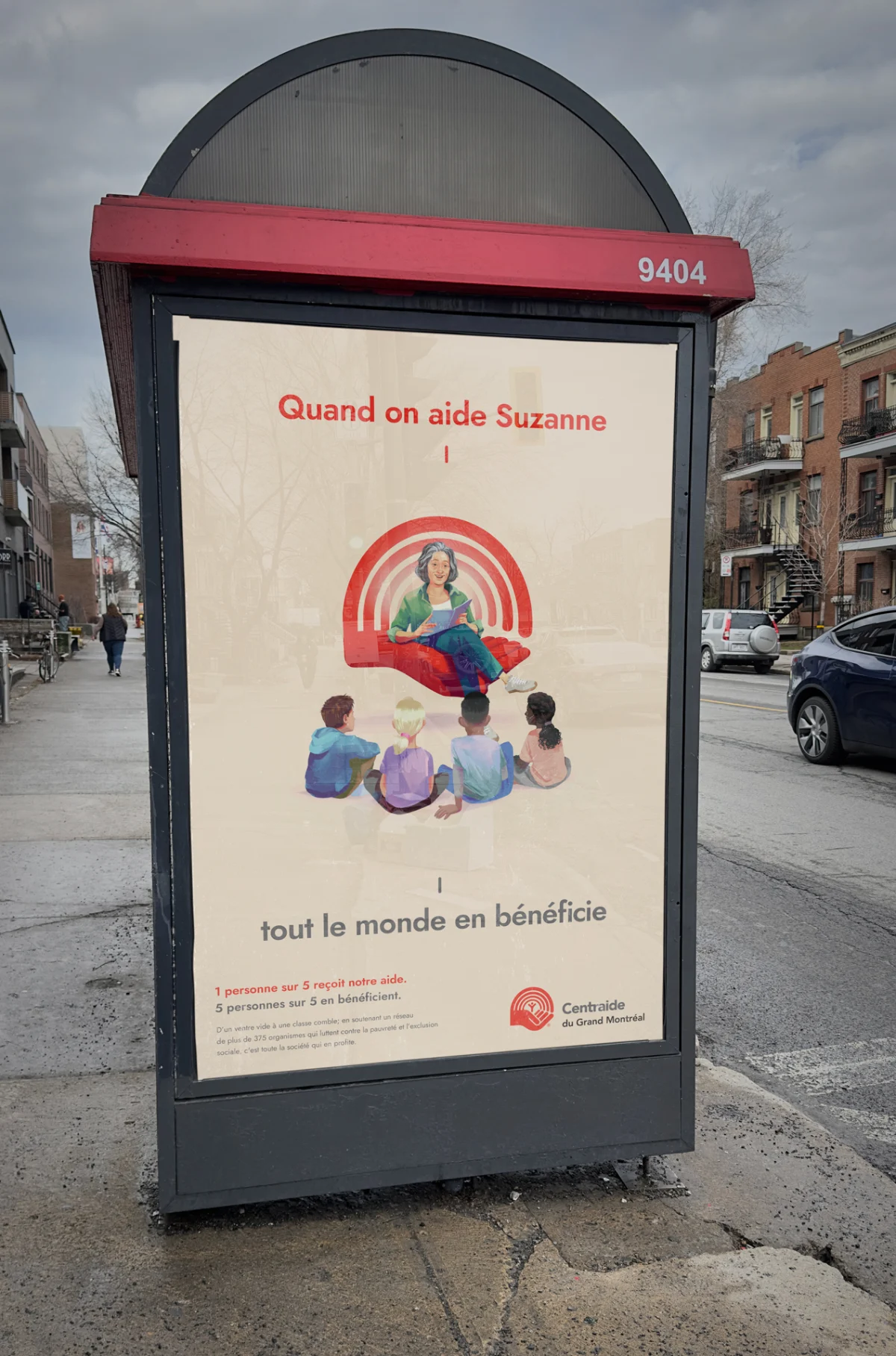 The media strategy led by Espace M enables the campaign to be deployed effectively across 30- and 15-second TV and web spots, out-of-home placements, radio, and digital ads. The campaign features individual stories transformed through the support of Centraide’s community organizations, emphasizing the long-lasting positive impact for all of society.