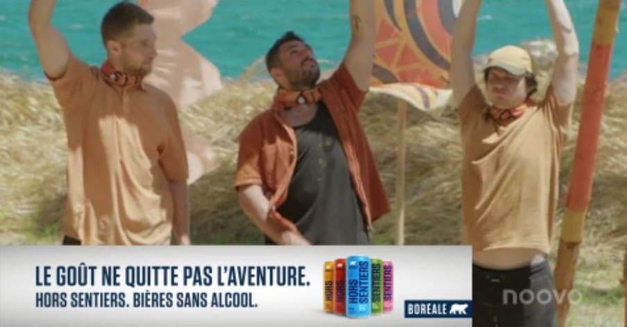 To achieve this, we leveraged a high-reach, high-engagement platform: Survivor Québec, one of the most-watched shows in the province during spring. Thanks to an integrated approach, the campaign came to life both on screen and in the minds of viewers. In addition to classic sponsorship formats (banners and panels), we integrated Hors Sentiers beer directly into the show by making it a tangible reward during one of the challenges.