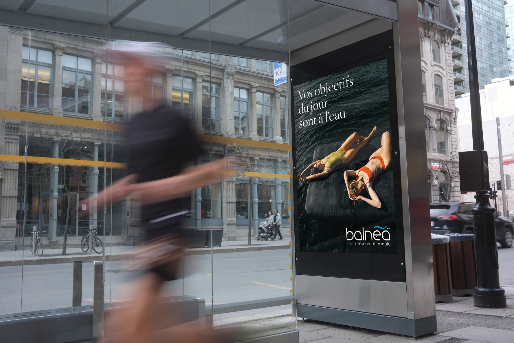Avec des visuels évocateurs captés par Mathieu Lachapelle et Alysson Gendron-Gallant, la campagne illustre des moments d’intense surcharge quotidienne en contraste avec la sérénité naturelle offerte par BALNEA, renforçant son message de nécessité du repos régulier.