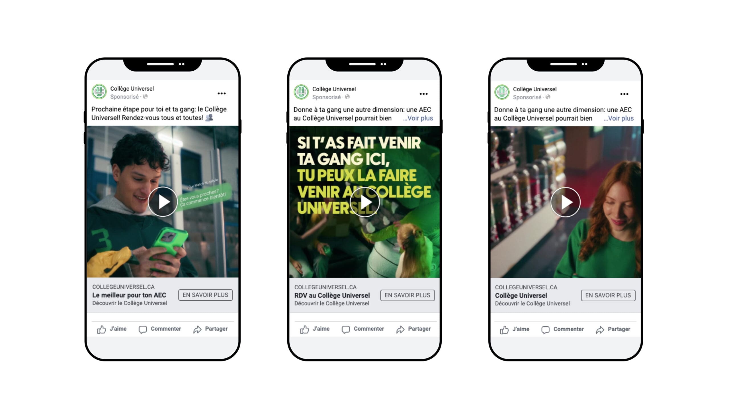 Espace M a collaboré avec l’agence de communication Hula Hoop afin de maximiser l’impact de la campagne « Amène ta gang au Collège Universel », une initiative stratégique qui met en avant les leaders de groupes d’amis. L’objectif? Convaincre les jeunes de considérer le Collège Universel en s’appuyant sur les dynamiques sociales et d’influence.