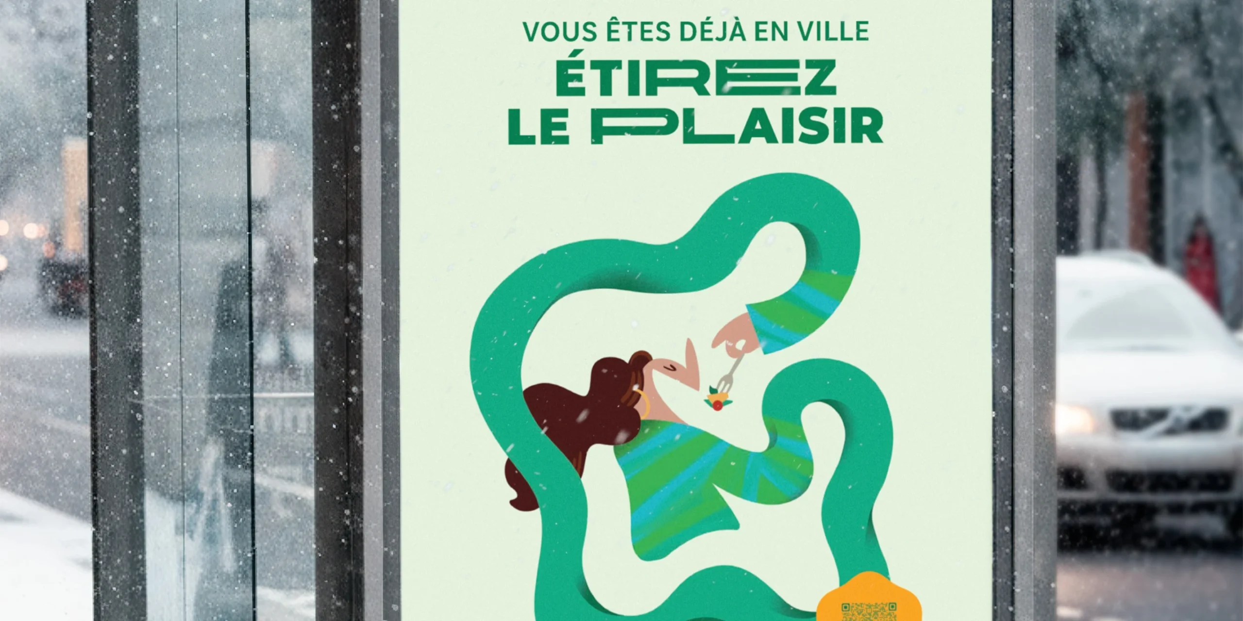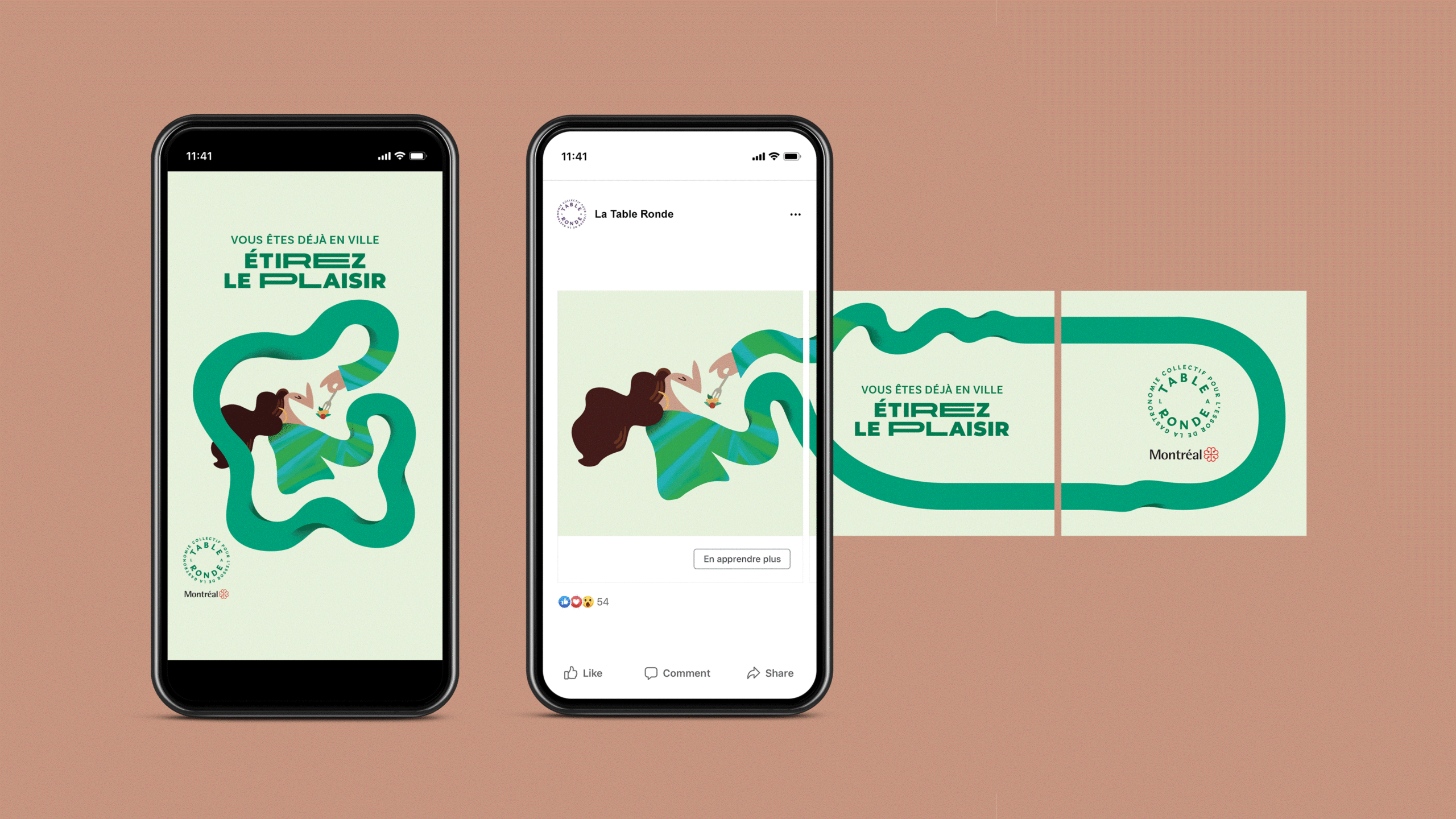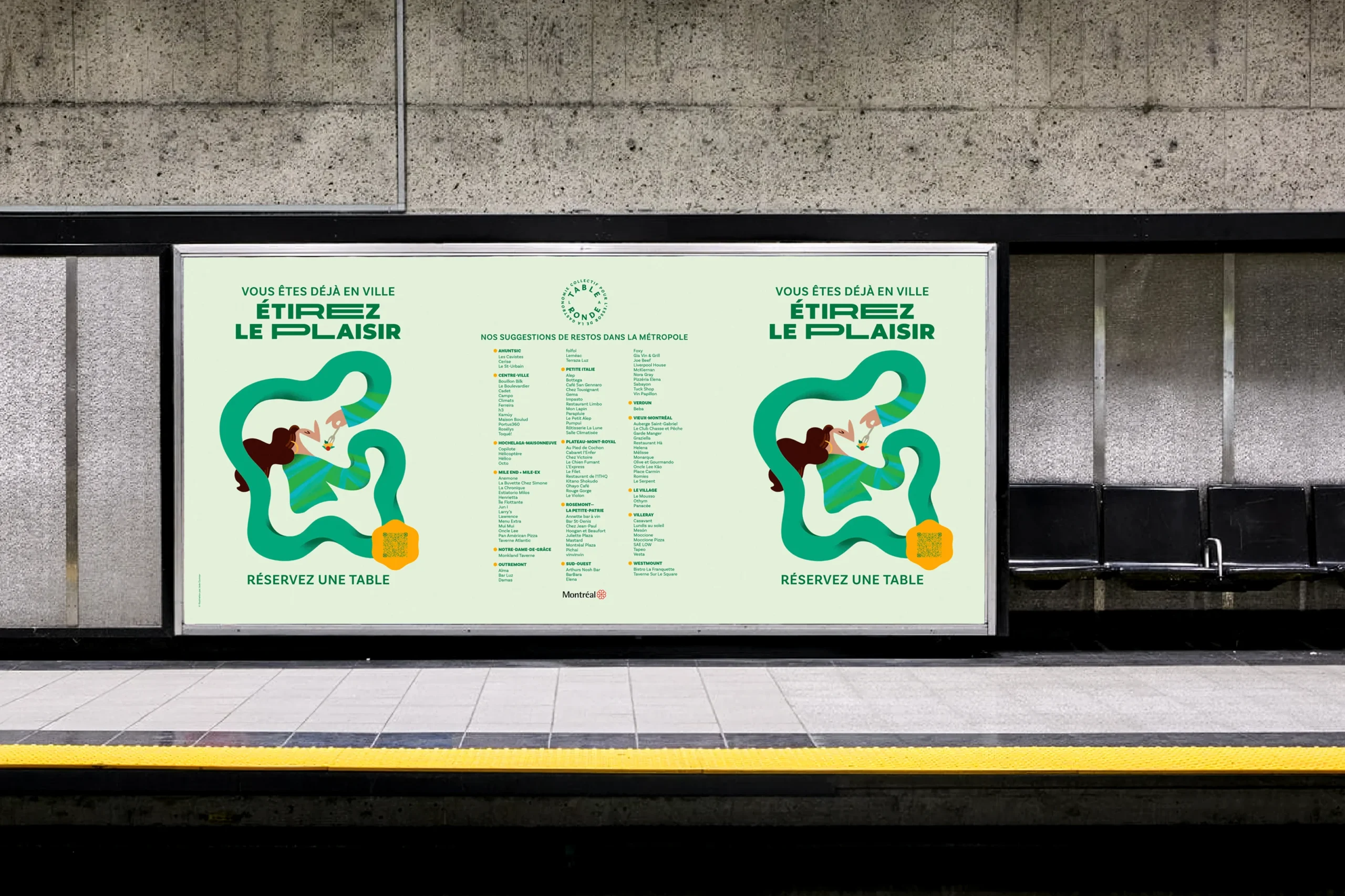 Avec l’appui de la Ville de Montréal, La Table Ronde a confié à PIGEON le mandat de créer la campagne. Étirez le plaisir devient le message clé. La campagne vise autant les clients d’affaires que les visiteurs du centre ville.